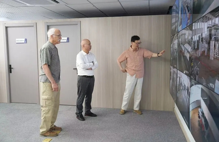 Spain教授参观森井生物运营中心,周宁一教授通过中心数字化远程生产控制平台,展示并讲解森井生物研发生产中心及全国“森井微工厂”原料、设备、技术、工艺、质检”五统一品控管理体系。 Spain教授对“森井微工厂”生产线生产过程实现零排放、无噪音、无异味和低能耗的先进管理给予高度评价,称其为名副其实的“绿色菌种工厂”;并对先进的智能化设备、精确的数字化管理系统和高效的自动化生产表示赞赏,充分认可了森井生物在科技创新方面的卓越能力。